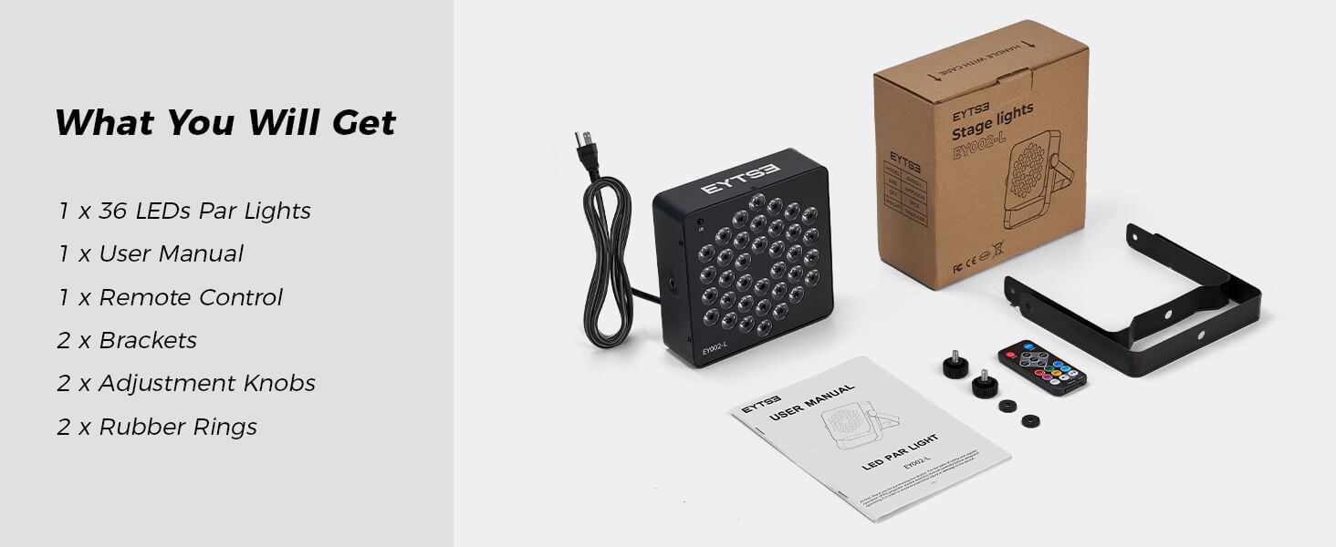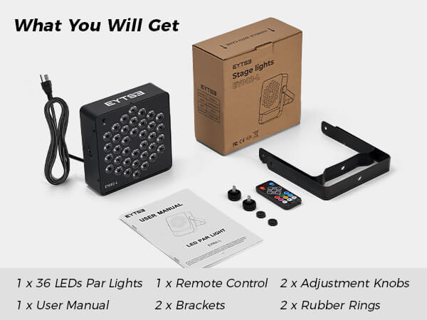 - Easy to Use: There are mounting brackets and screws in the package, the disco DJ equipment light can be mounted on the wall, or ceiling, or put the party light on the ground or anywhere you want to install it. You can install and adjust the lighting angle of the LED par light according to your preferences