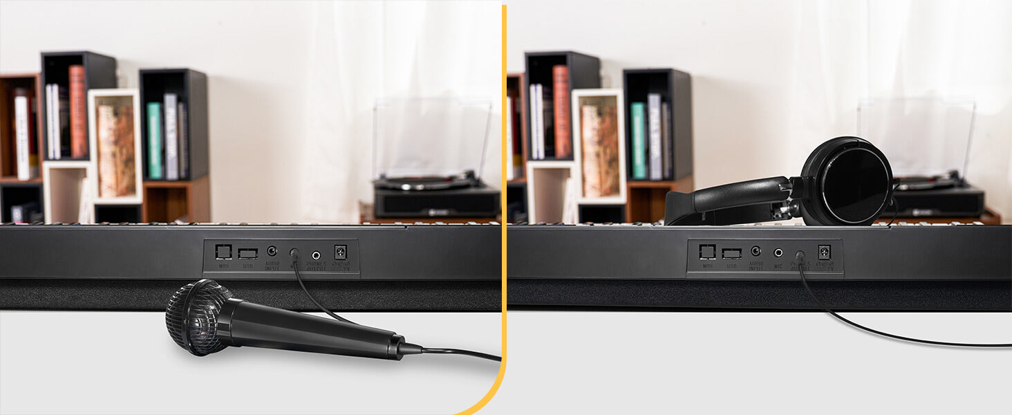 Immerse yourself in music without disturbing others. Our keyboard features a headphone jack for quiet, private practice sessions. Perfect for late-night practice or shared spaces, you can enjoy focused, uninterrupted practice while keeping noise levels down. Whether you’re perfecting a piece or experimenting with new ideas, the headphone connection ensures you can play anytime, anywhere, without disrupting those around you.