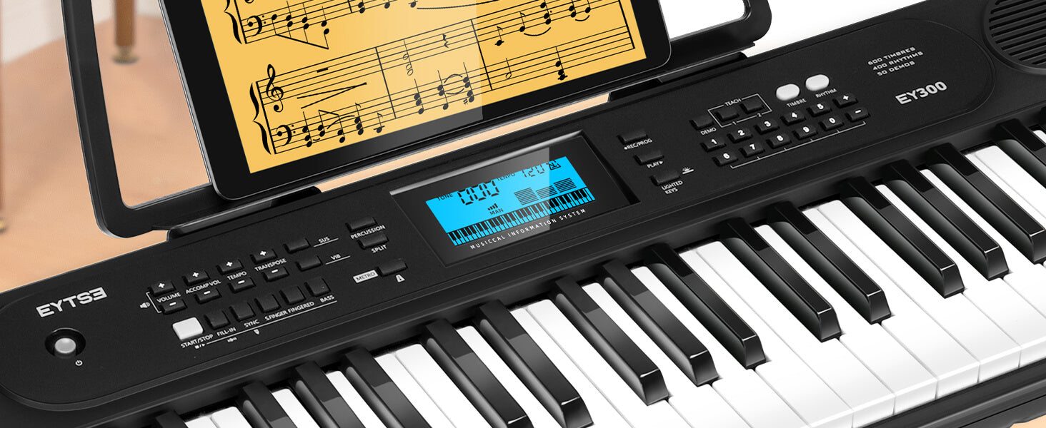 Eytse EY300 61 Key Keyboard Piano, Beginners Electric Keyboard Set, Lighted Full Size Keys