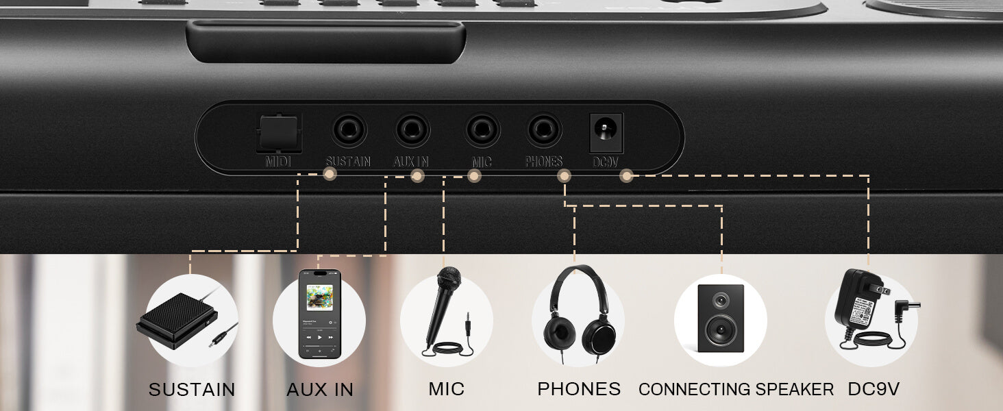 - Multi-Functional Electronic Piano: This 61-key full-size electronic piano features recording, playback, chords, drum kits, a metronome, and transposition to meet your various playing needs. The keyboard can be easily connected to a microphone, headphones, sustain pedal, and more. Plug in your headphones to practice quietly and enjoy your music to the fullest